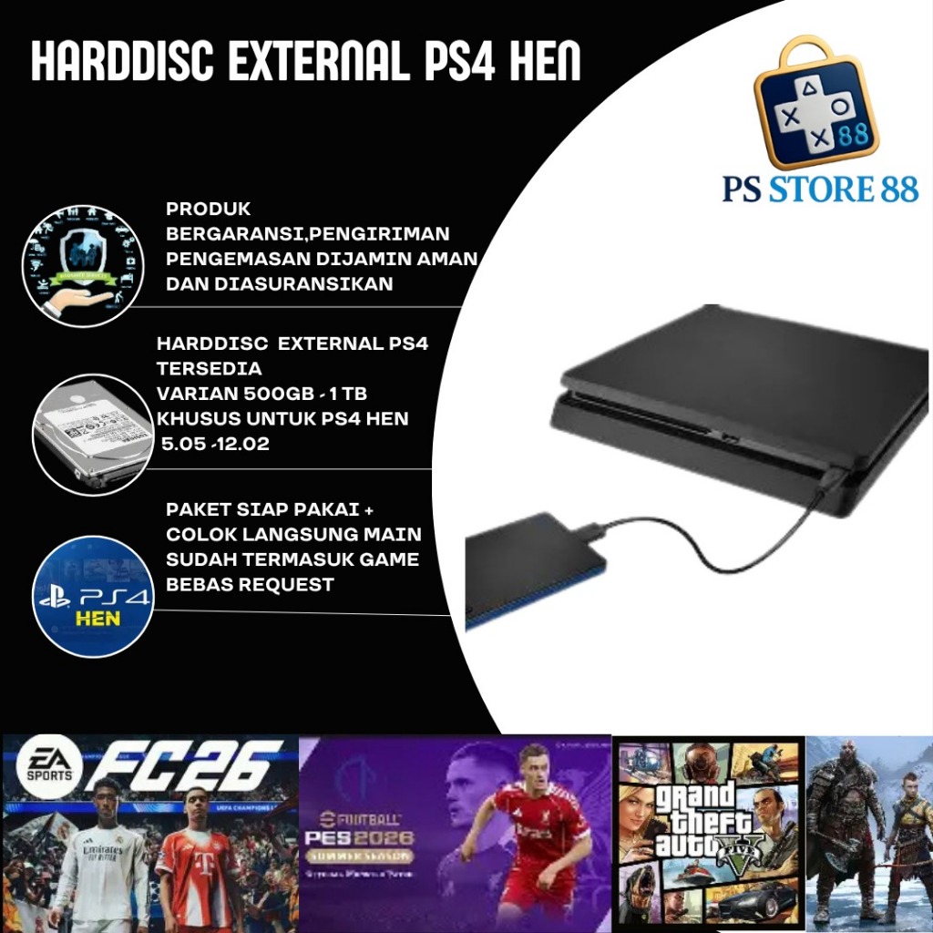Harddisk Eksternal PS4 250GB 500GB 1TB Full Game Update Plug Play PS4 HEN