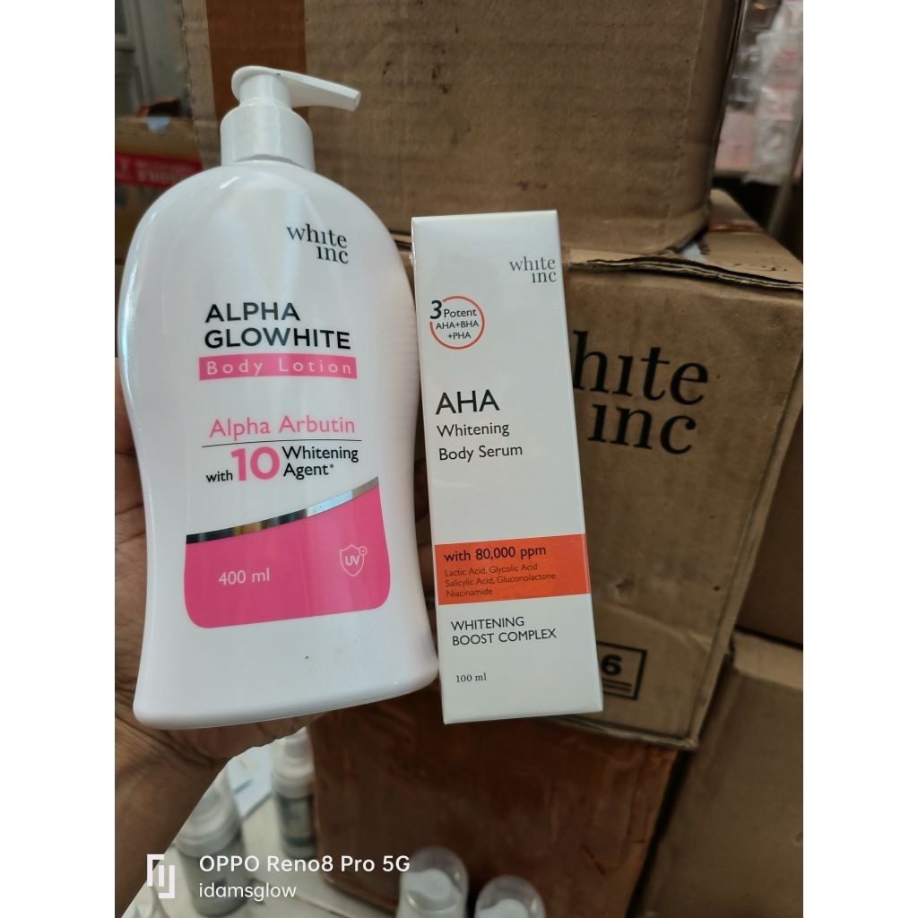 PAKET WHITE INC Alpha Glowhite Body Lotion + AHA Whitening Serum Original