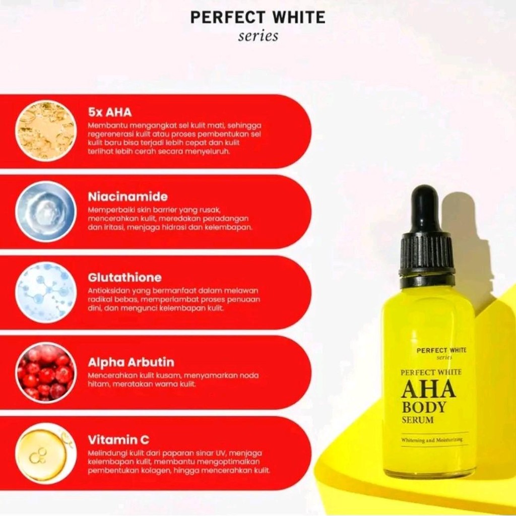 [DAPAT 2] PERPECT WHITE AHA BODY SERUM 50ML ACID LOTION MENCERAHKAN MEMUTIHKAN MEMUDARKAN KUSAM HITAM
