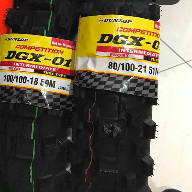 Paket Ban Dunlop DGX -01 80 100 -21, 110 100 - 18 64M TRAIL TUBETYPE REAR PRODUKSI 2025 BONUS KAOS DISTRO