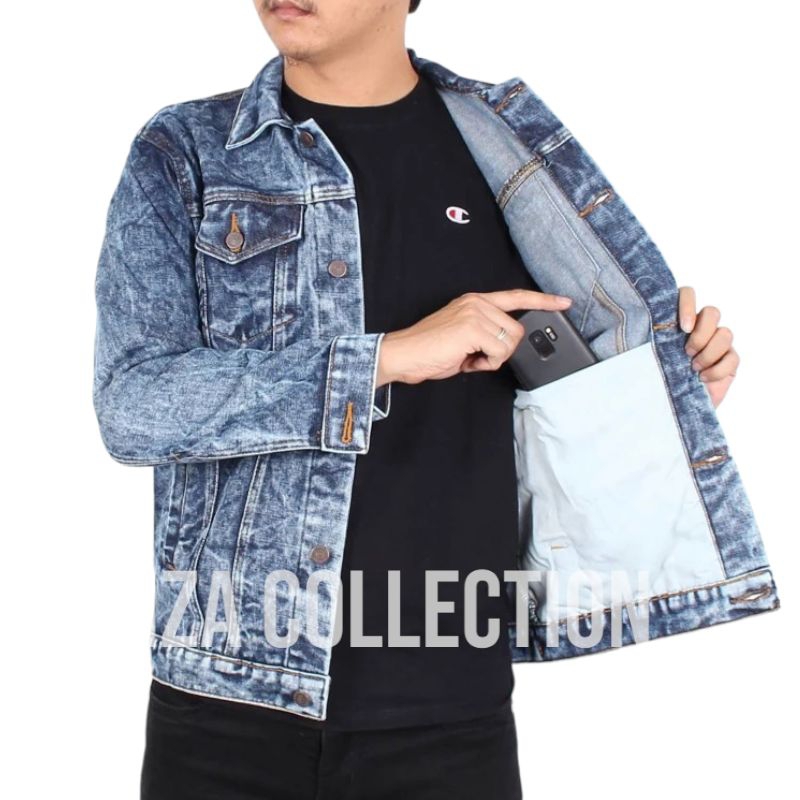JAKET JEANS PRIA PREMIUM SNOW OVERSIZE