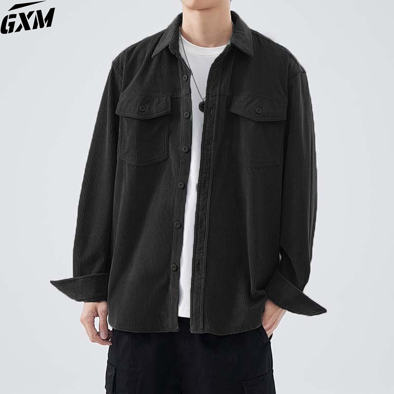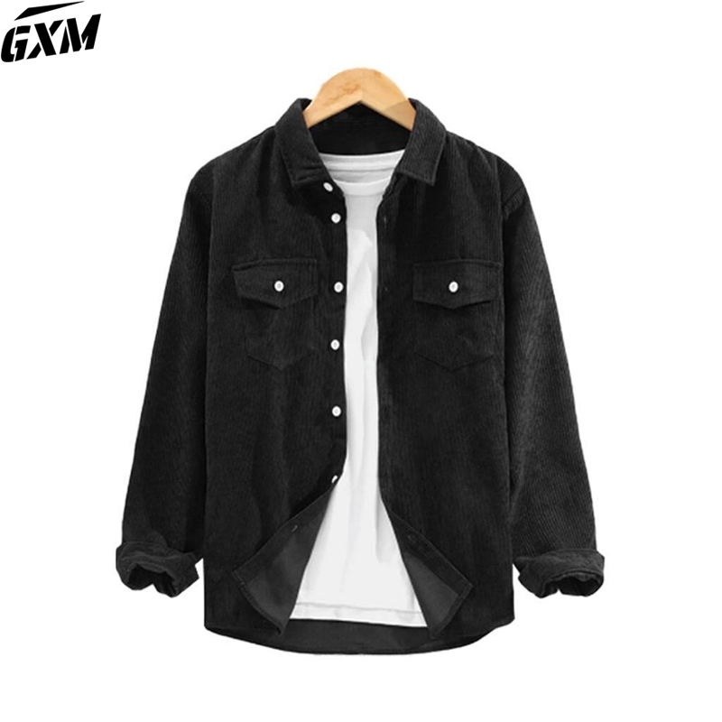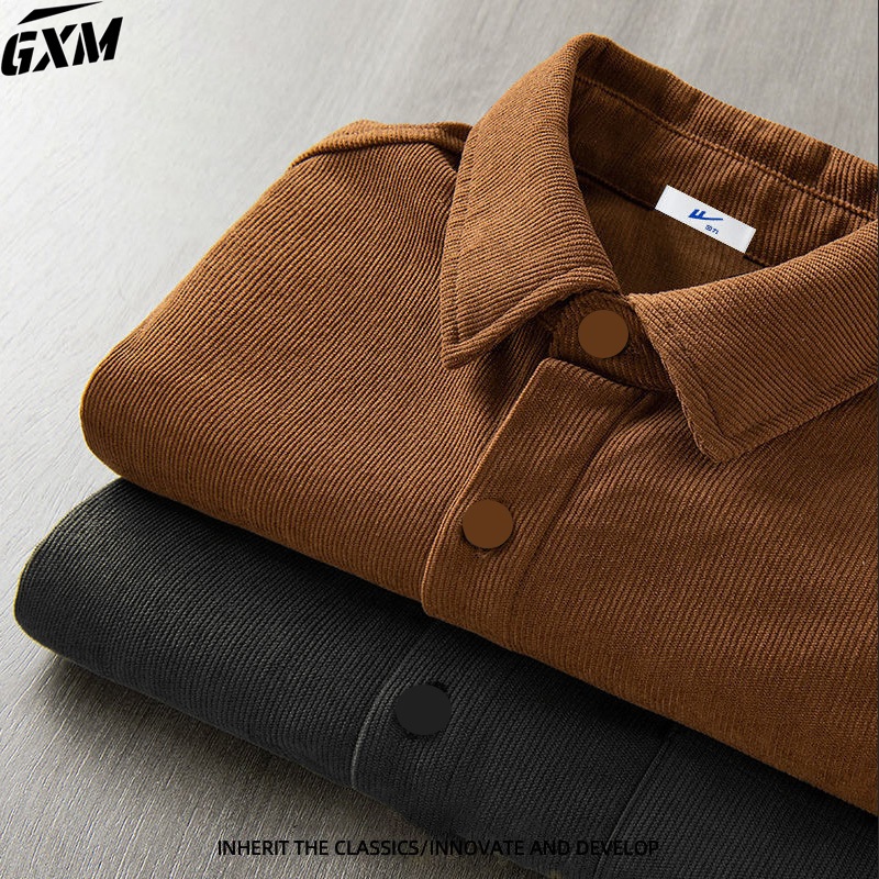 GXM Jaket Corduroy Pria Jumbo M-5XL Jaket Pria Korean Style Oversized T Shirt Vintage Cokelat