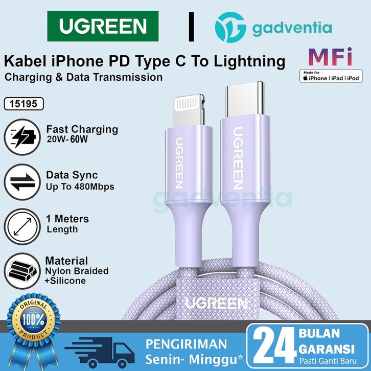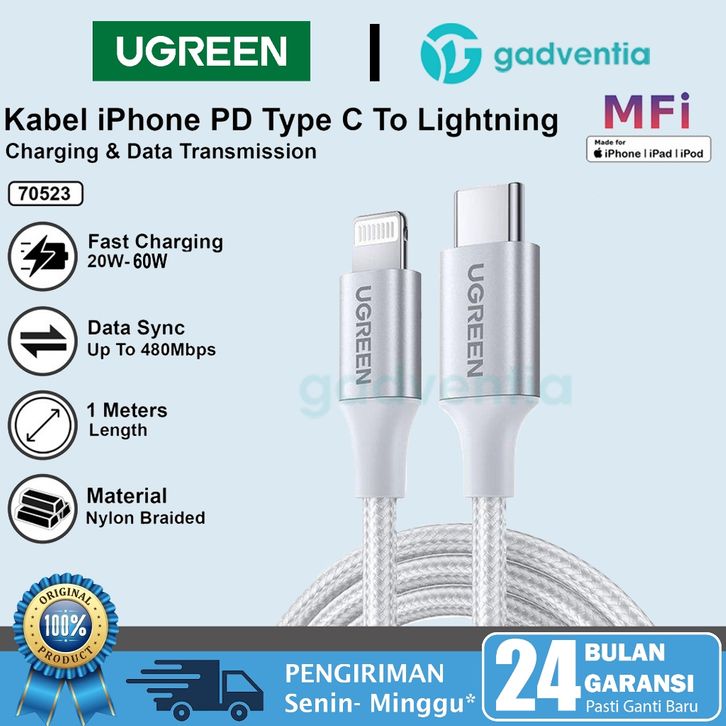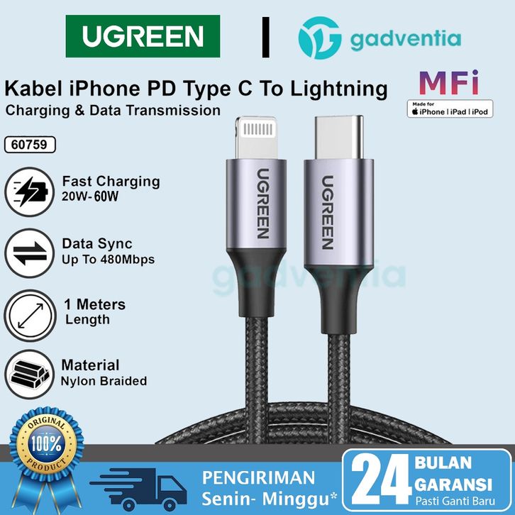 Ugreen Charger Official Store 20w For iPhone XR 11 12 13 14 MFI PD Type C To Lightning Fast Charging GAN