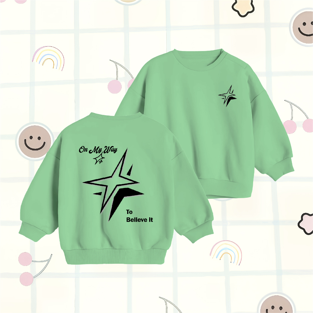 Sweater Anak Laki Laki WGUD'S KIDS Crewneck Sweater Basic Anak On My Way Umur 4-15 Tahun Unisex Laki-Laki & Perempuan