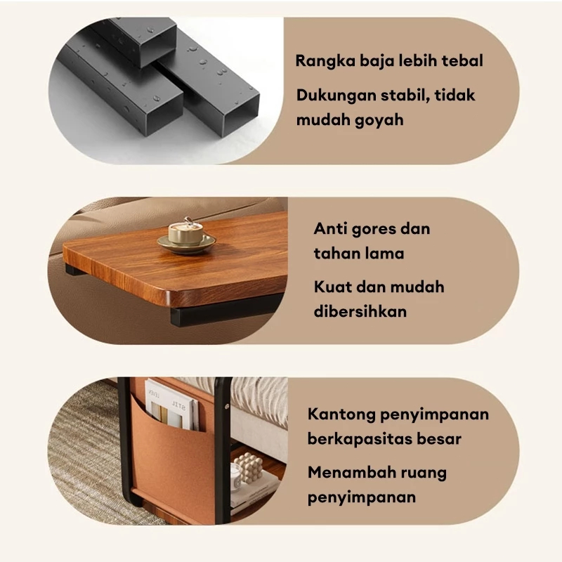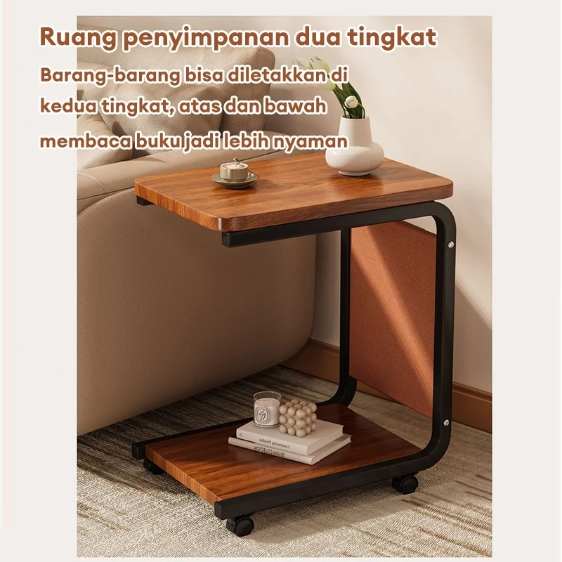 YONEZAWA Meja Sudut Sofa Dengan Roda Meja Kopi Seluler Meja Samping Tempat Tidur Portable Meja Tamu Murah Meja Seaguna M