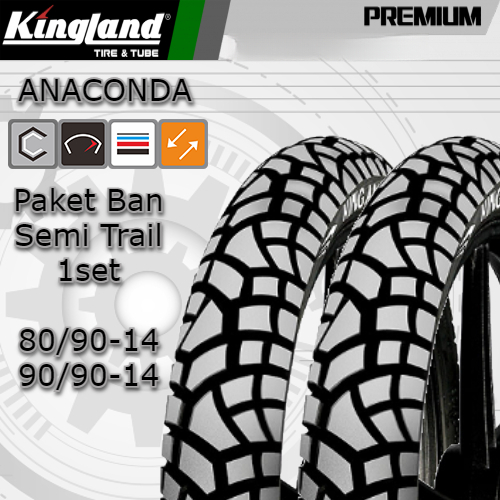 Paket Ban Matic Semi Trail 80/90-14 dan 90/90-14 Kingland Anaconda Tubeless Harga 1set Depan Belakang