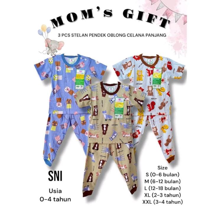 NEW MOTIF STELAN HARIAN ANAK MEREK MOM'S GIFT USIA 0-4 TAHUN BAJU TIDUR ANAK UNISEKS Bayi - 3 PCS NEW CP S (0-6 bulan)