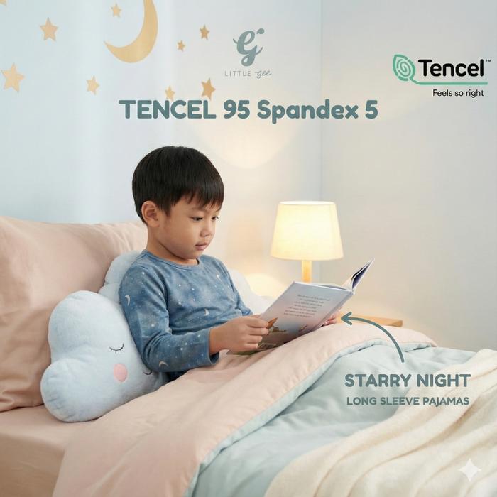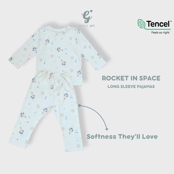 Little Gee Baju Tidur Lengan Panjang TENCEL Bayi 1-10 Tahun Seri Roket | Piyama Anak Terbaru Unisex - Rocket 1-2Y