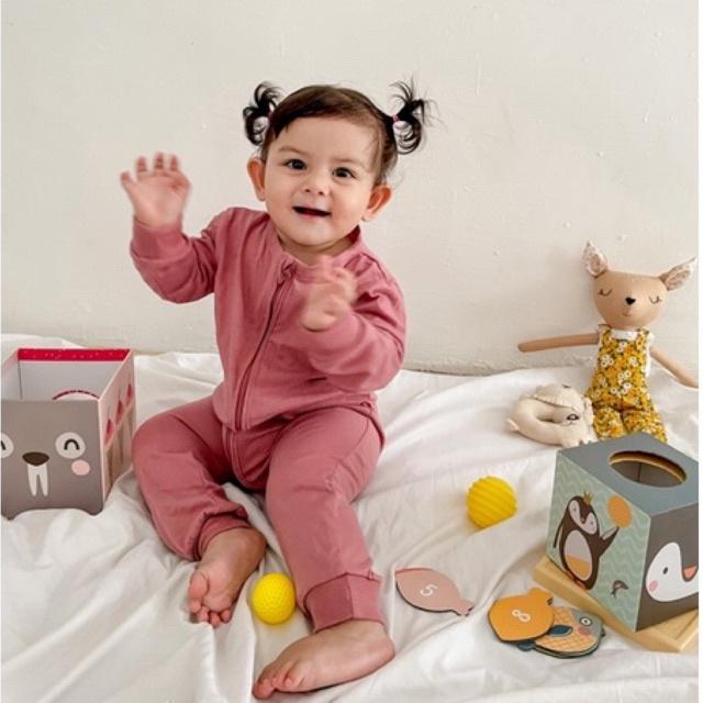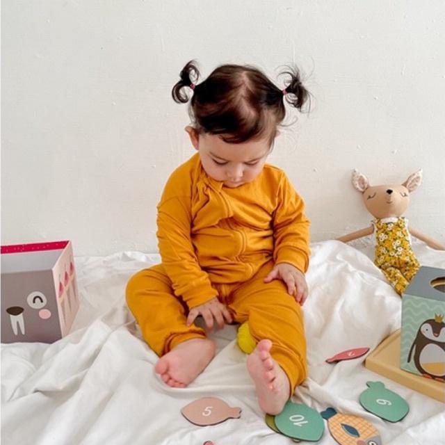 MINI COTTONS BABY Sleepsuit Jumper Bayi Piyama bayi Cotton Newborn Tidur Unisex - Orange Squash 6-12 Bulan