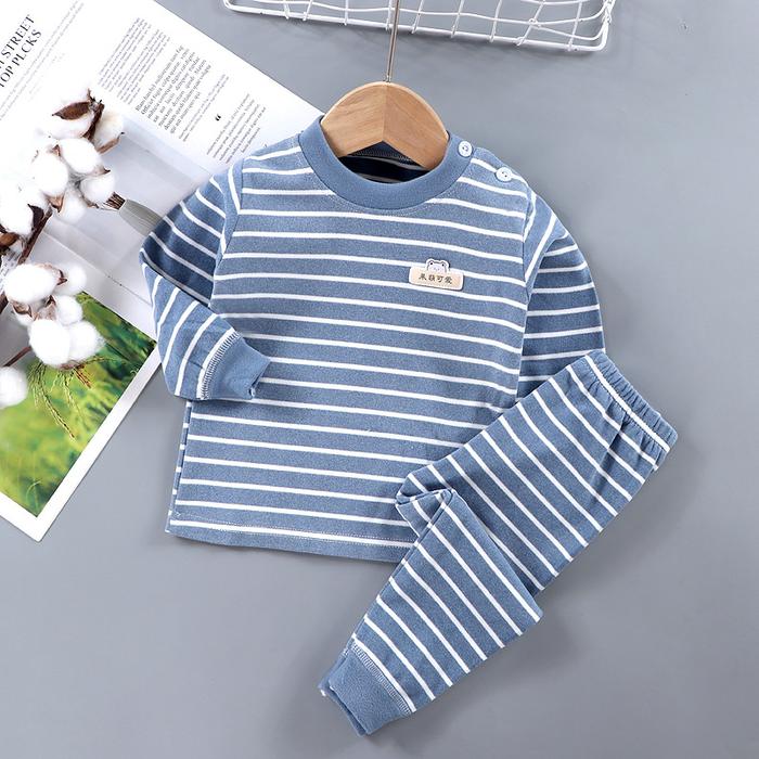 MIBABY Setelan Tidur Lengan Panjang/Baju Tidur Anak Setelan Piyama Set Lengan Panjang Kancing - BIRU TUA 100 (2-3 tahun)
