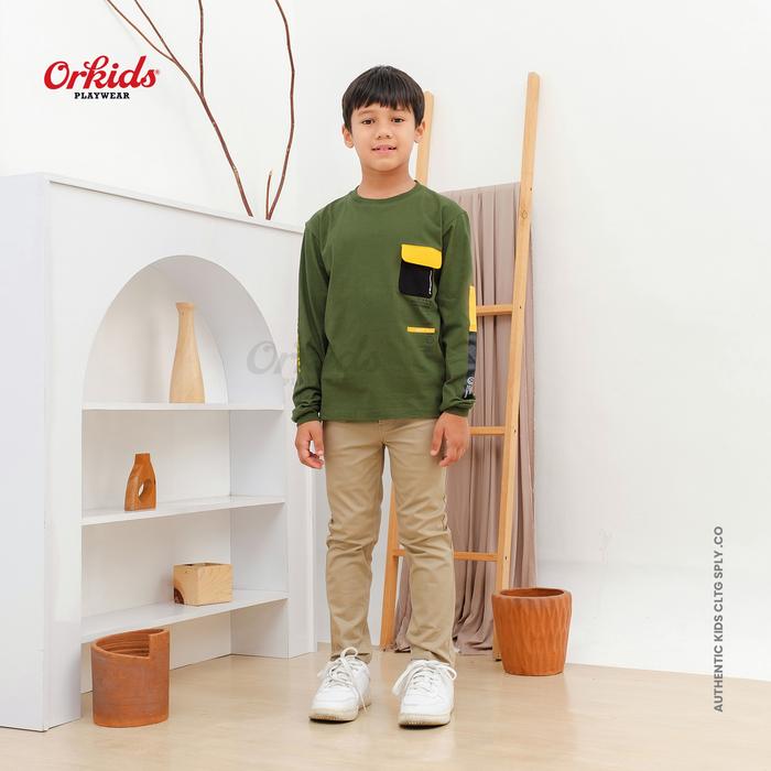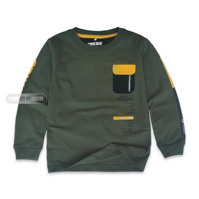ORKIDS Kaos Lengan Panjang Anak Laki-Laki usia 1 - 12 tahun Katun ComAtasan Fashbad Cowok Tux Green - GREEN S