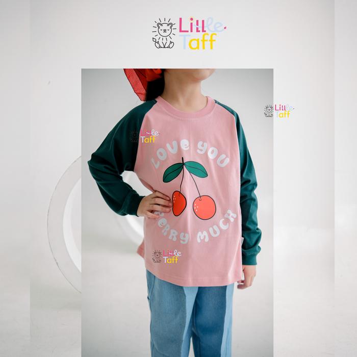 LITTLE TAFF - Kaos Raglan lengan Panjang Anak Perempuan Usia 2 - 14 Tahun. - emrld/peony (cerry) S