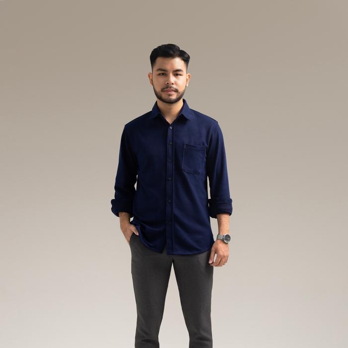 Broodis Kemeja Basic Formal / Casual Polos Pria Cokelat Cotton SOFTEE Coffee Lengan Panjang Slimfit - Lacos Navy S