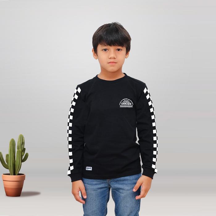 Baju Kaos Anak Laki lengan Panjang umur 1-12 tahun State Black Katun Putih - Black XS