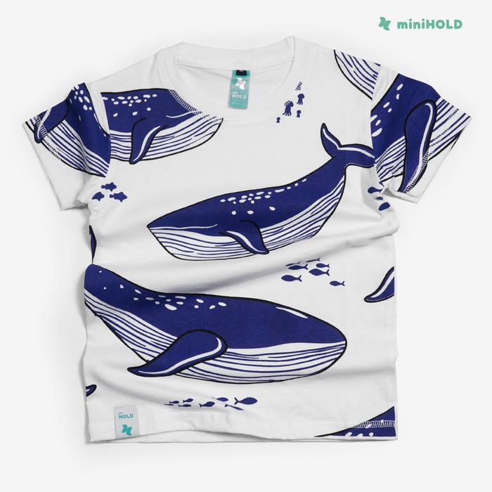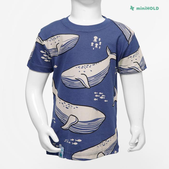 MINIHOLD Whale Series Kaos Fullprint Anak Cotton Combed 30s Usia 1-12 Tahun Katun Laki-Laki Perempuan - PUTIH s