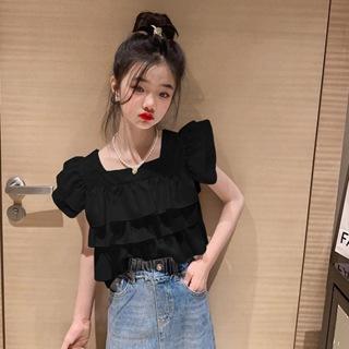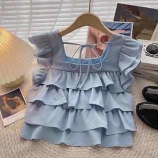 KSP12-Kaos Tshirt Atasan Katun Anak Perempuan Korea Ruffle 3 Layer - Biru L