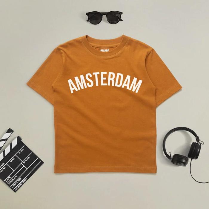 Kaos Print City Series - Kaos Oversize - Anak Laki-Laki & Perempuan - AMSTERDAM (Mustard) M (3-4th)