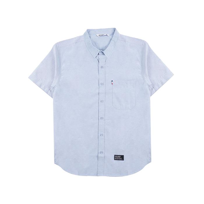 HOOLIGANS Kemeja SS - Shearer Blue Biru Basic Formal Pendek Pria Kerah Casual - XL