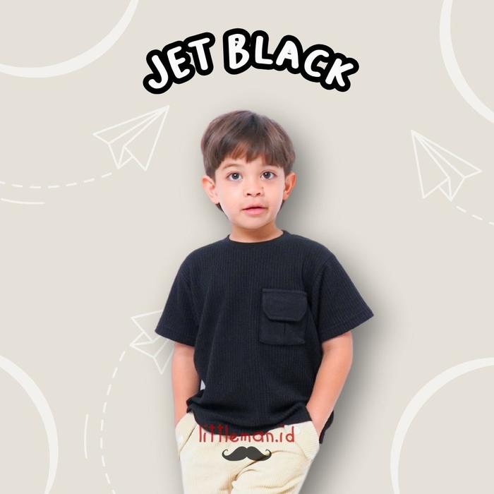 Kaos Waffle Anak Galen Series 1-12 Tahun Lengan Baju Pendek Cewek Cowok Littleman.id - Jet Black S (2-3 thn)