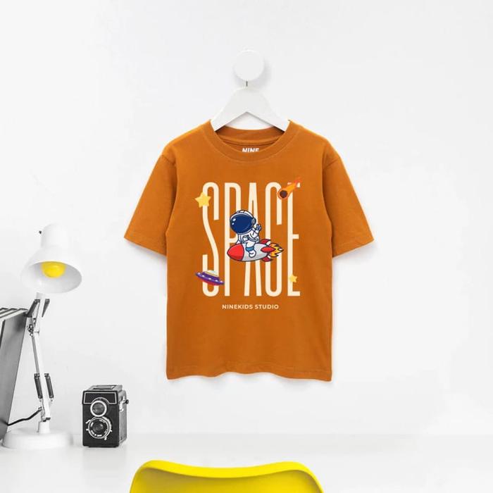 Kaos Print Astronot Series – Kaos Oversize - Anak laki–laki & Perempuan - Space ( Mustard ) M (3-4th)