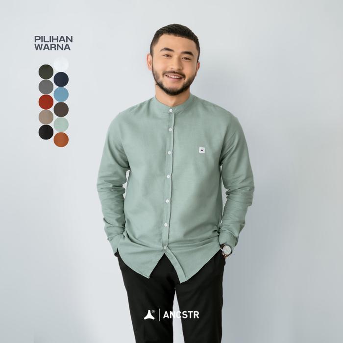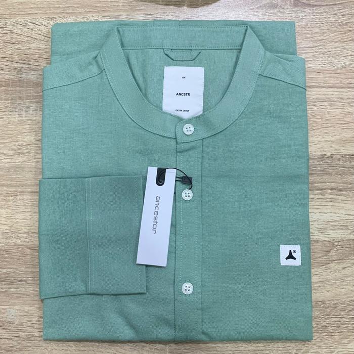 ANCSTR Kemeja Shanghai - Linen Panjang Katun Nyaman - Hijau Mint (Panjang) M