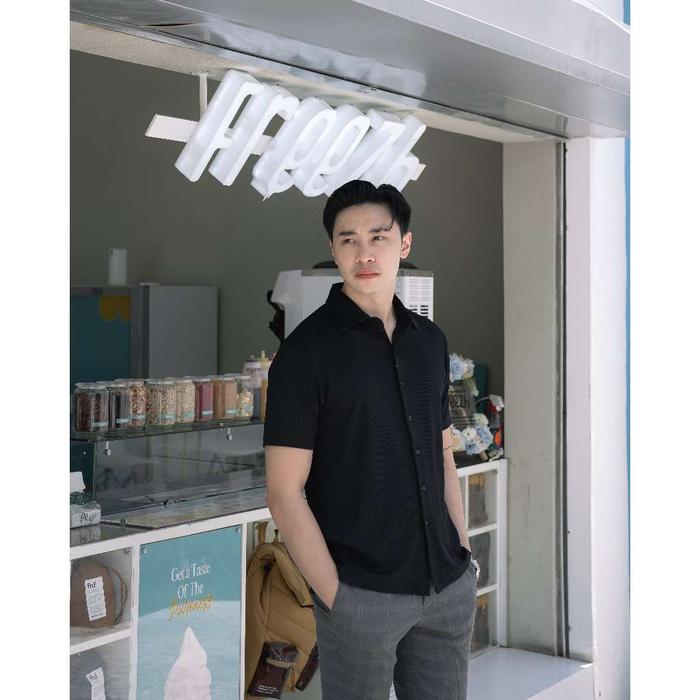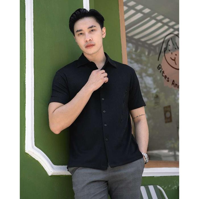 BYBLANK Fukuoka Kemeja Knit Lengan Pendek - Kemeja Premium Pria Bahan Knit - Black S