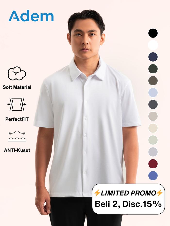 KLOTIFAI - Adem SS White - Kemeja Lengan Pendek Pria | Lembut Nyaman Anti-Kusut - S