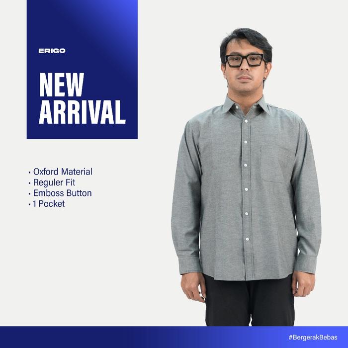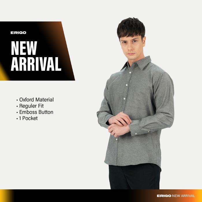 Erigo Basic Long Sleeve Shirt Bhevin Grey - Kemeja Lengan Panjang Oxford Unisex - M