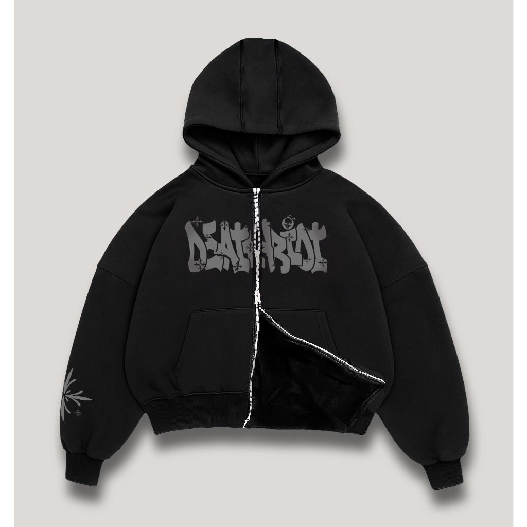 DTRT - HOODIE BOXY DOUBLE ZIPPER HITAM PRIA SKENA JAKET HOODIE SWEATER OVERSIZED COUPLE - FREE GIFT