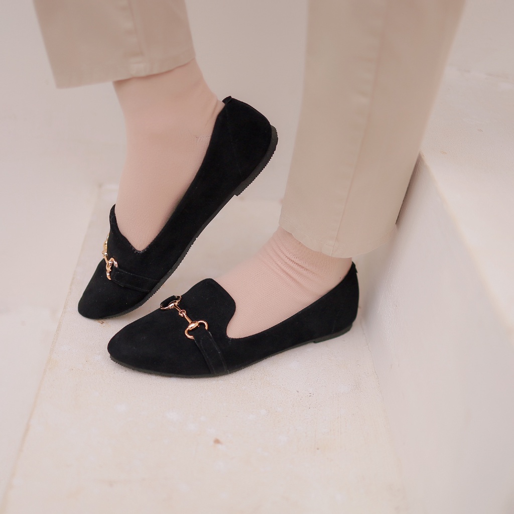Hellona Ayana Flatshoes Wanita Desain Simpel Warna Black