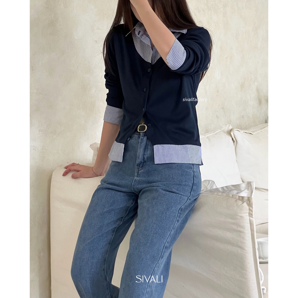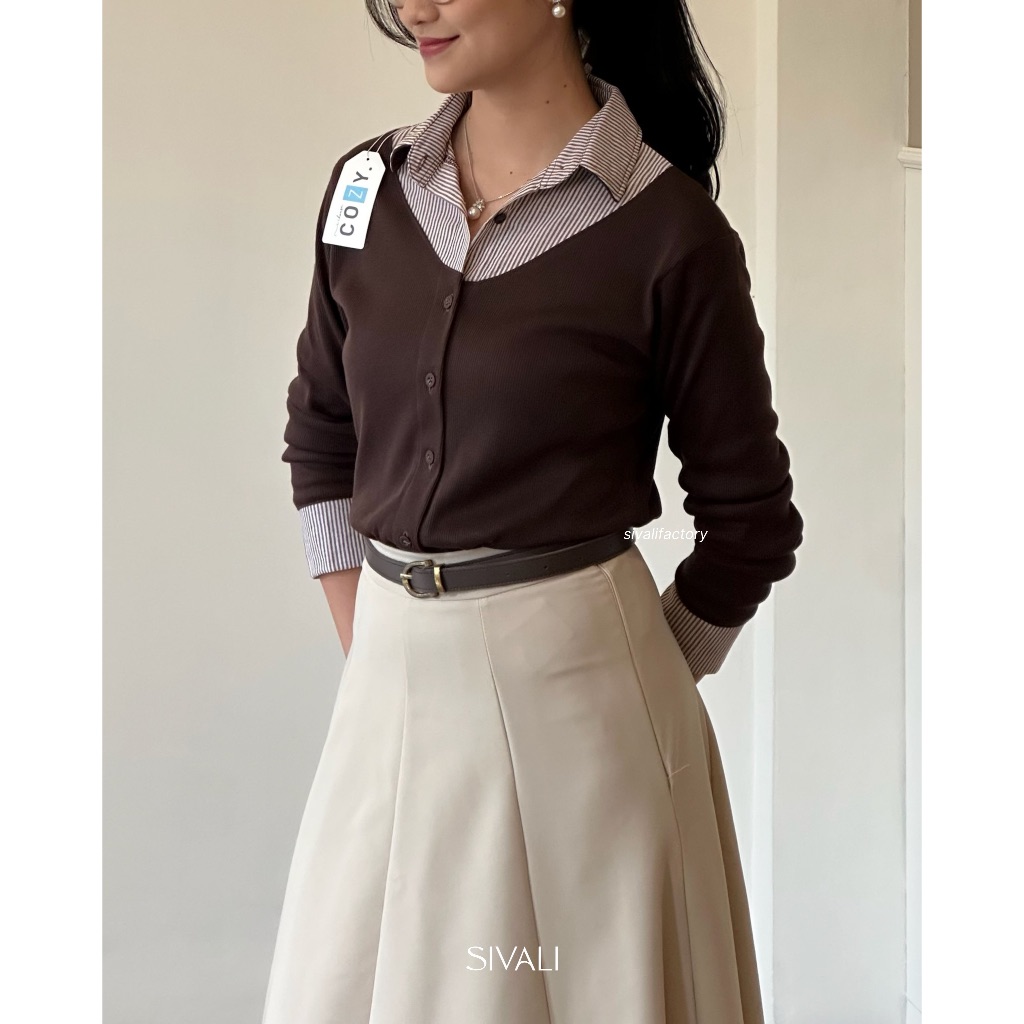 Yuki Stripe Collar - Stripe Layer Shirt - Atasan Wanita Kemeja Lengan Panjang | 075