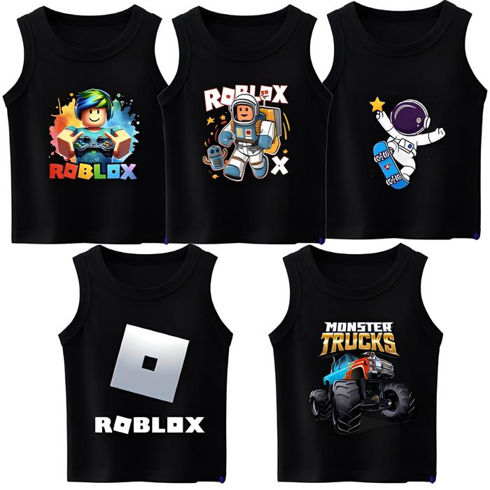 Kaos singlet anak paket hemat isi 5PCS usia 2-16 tahun pakaian dalam anak unisex cewek/cowok - [ISI 5] HITAM SEMUA S
