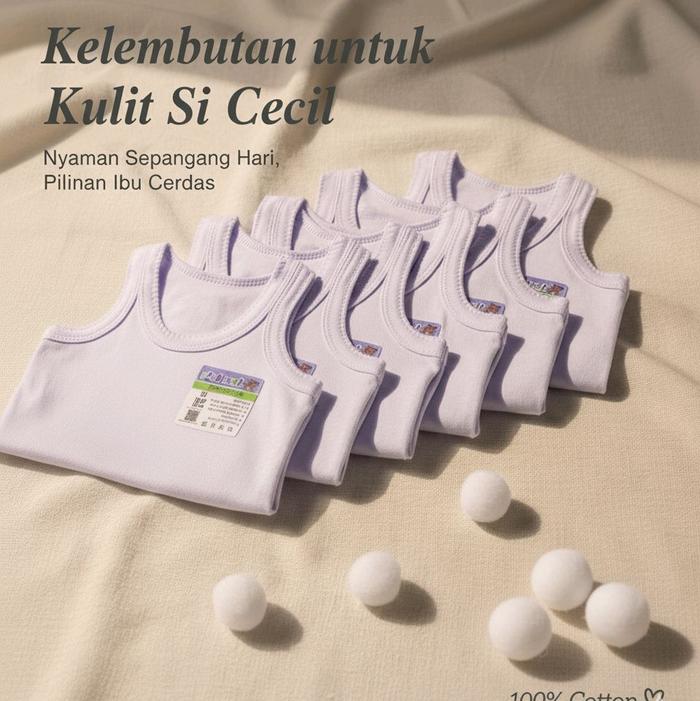 (PROMO)12pcs Kaos dalam Anak Newborn polos/Singlet Anak Bahan Katun lembut/Dalaman Anak termurah - 1 LUSIN PUTIH S
