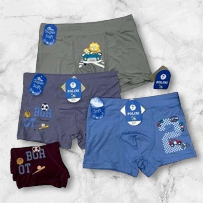 12pcs Boxer Anak Cowok Polini Art 505 - Dalaman Segiempat Laki-laki Bahan Katun Ukuran M-L-XL-XXL - M