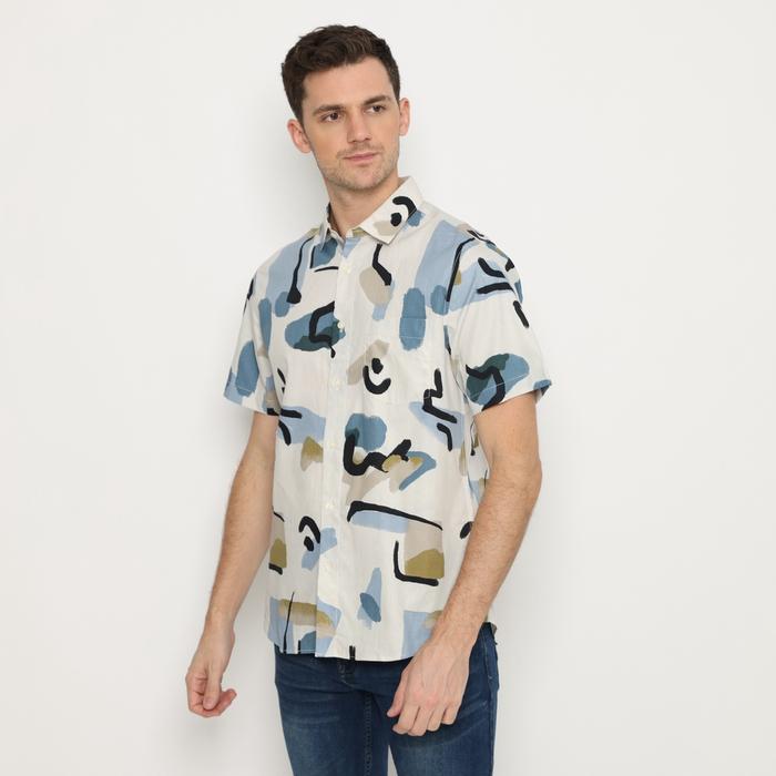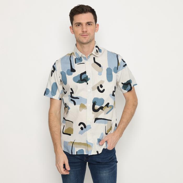 Platini Kemeja Motif Pria Lengan Pendek Katun Broken White 132185 - S