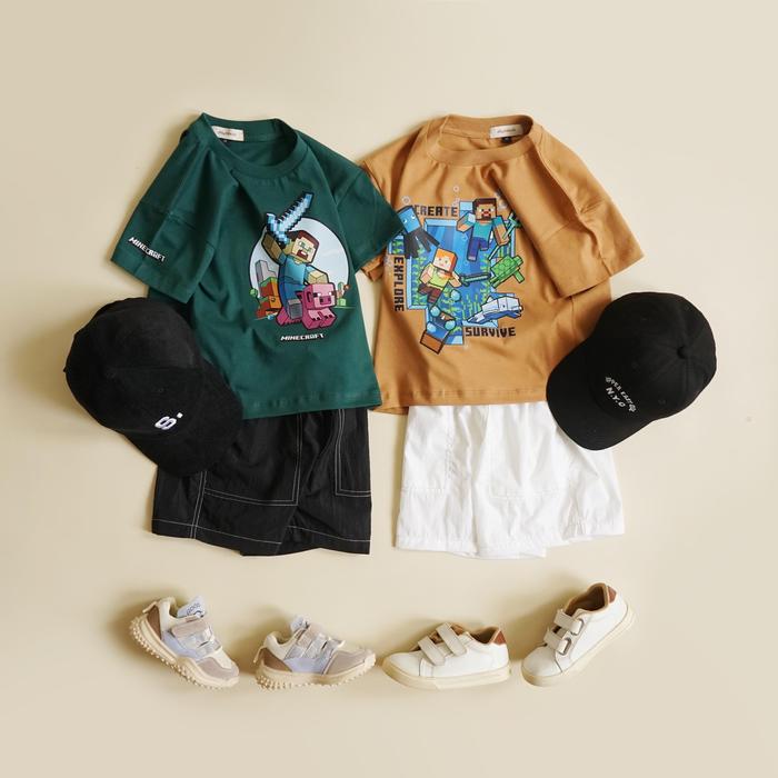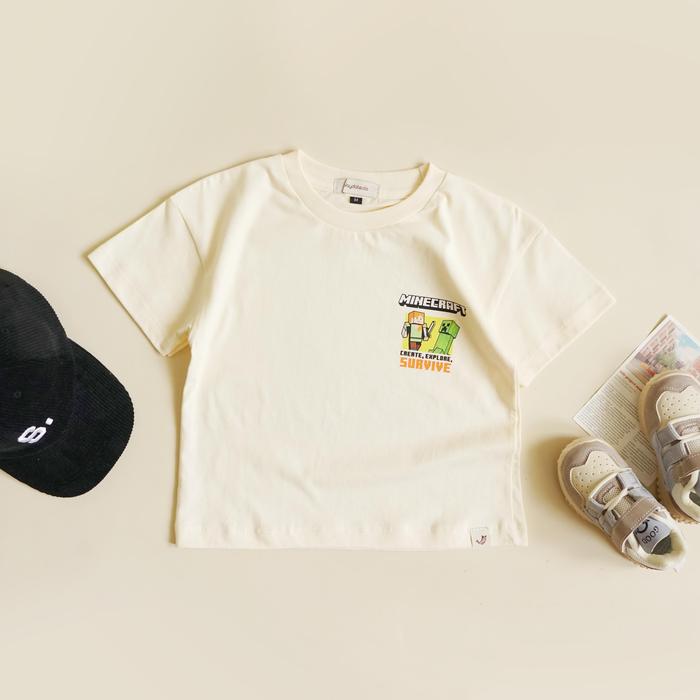 Playdate Baju Atasan Tshirt Kaos Oversize Anak Cowok Cewek Korea 1 sampai 7 Tahun Katun Premium - Mcraft Cream L 4-5Y