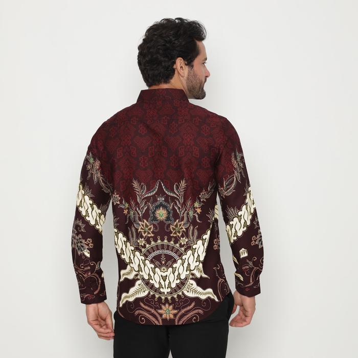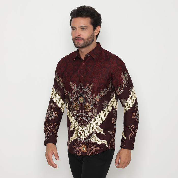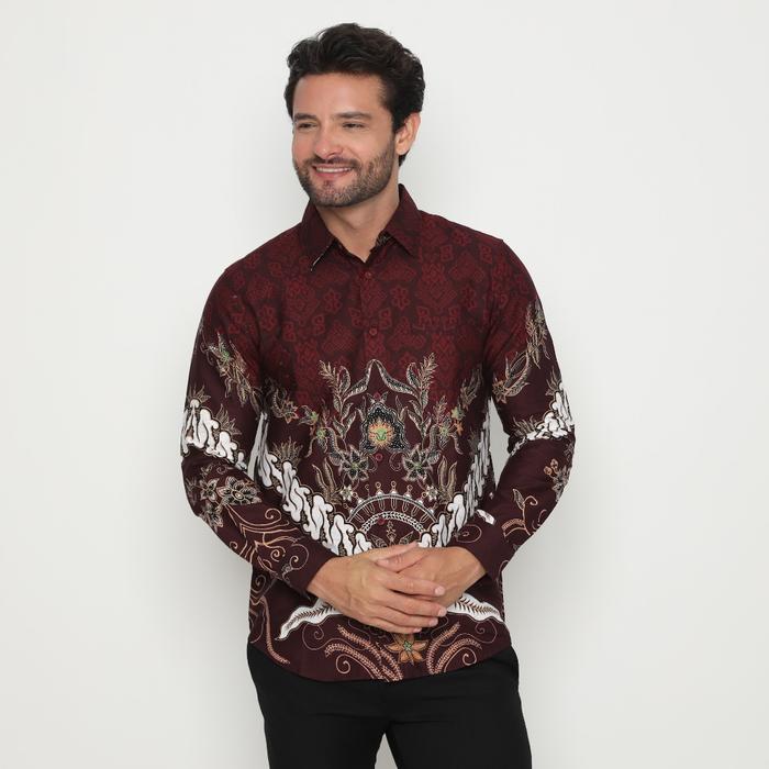 Platini Kemeja Batik Pria Lengan Panjang Katun Maroon 36051 - S