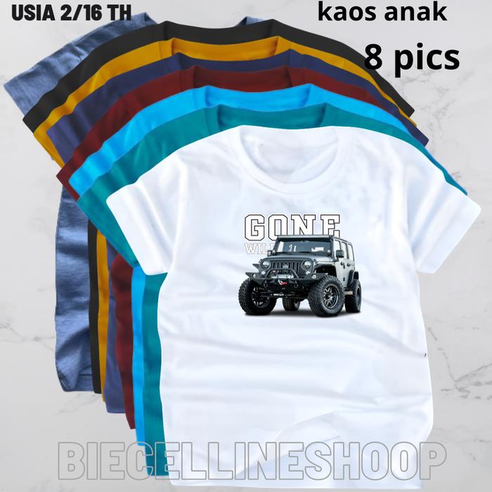 Kaos anak paket hemat isi 8pt spandek PE Gone Usia 2-16 Tahun Cewek Cowok Perempuan Laki-Laki - 8pcs S