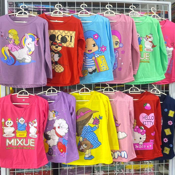 Kaos Anak Lengan Panjang Paket Hemat Isi 6pt Bahan Soft Katun Fashion usia 1-12 Tahun - CEWEK Lengan PJG S 1-2th