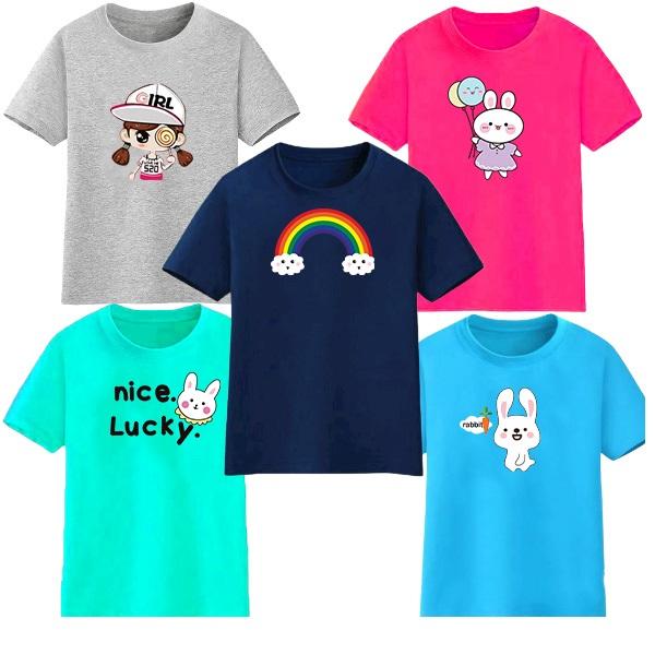PAKET 5 PCS BAJU ANAK PEREMPUAN / CEWEK ATASAN ANAK PEREMPUAN DIGITAL SABLON Crew Neck kaos fashion - KODE 801 S