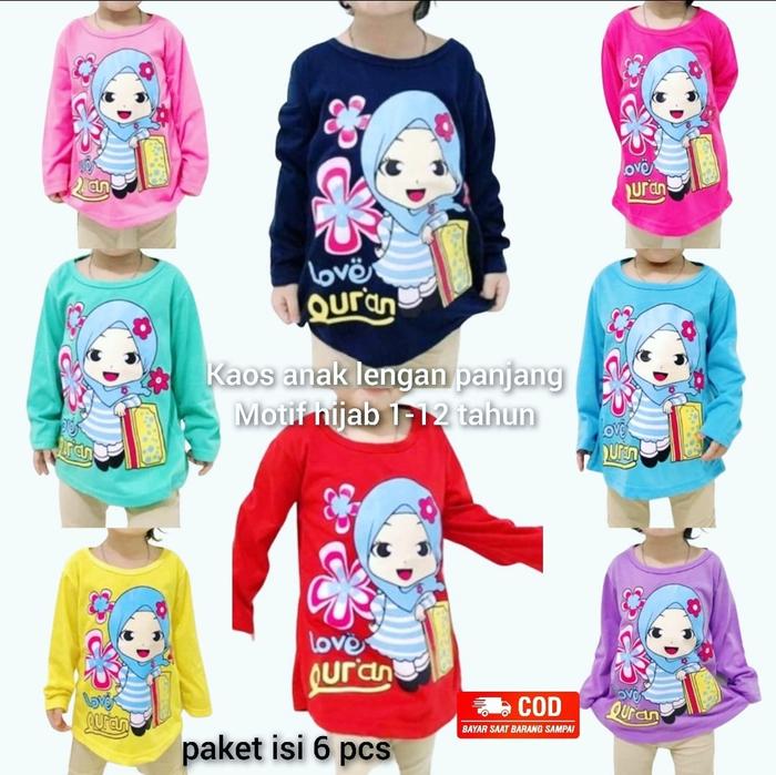 Kaos anak 95ribu dapat 6 pcs usia 1-12 tahun motif hijab lengan panjang bisa random Combed - campur warna S 1-2 tahun