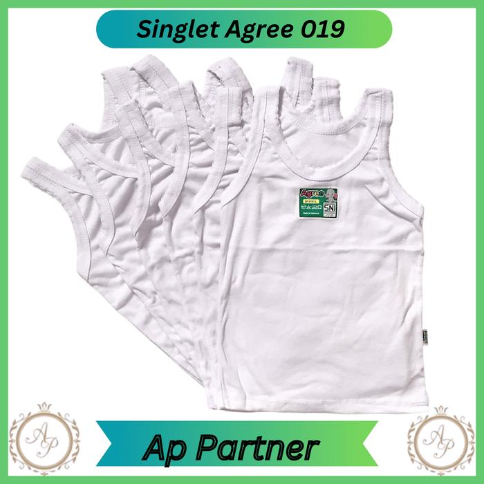 6 Pcs - Singlet Kaos Dalaman Anak Cewe Cowo Agree Kids SF 019 Katun Putih S - XXL Umur 1-8 Tahun - S