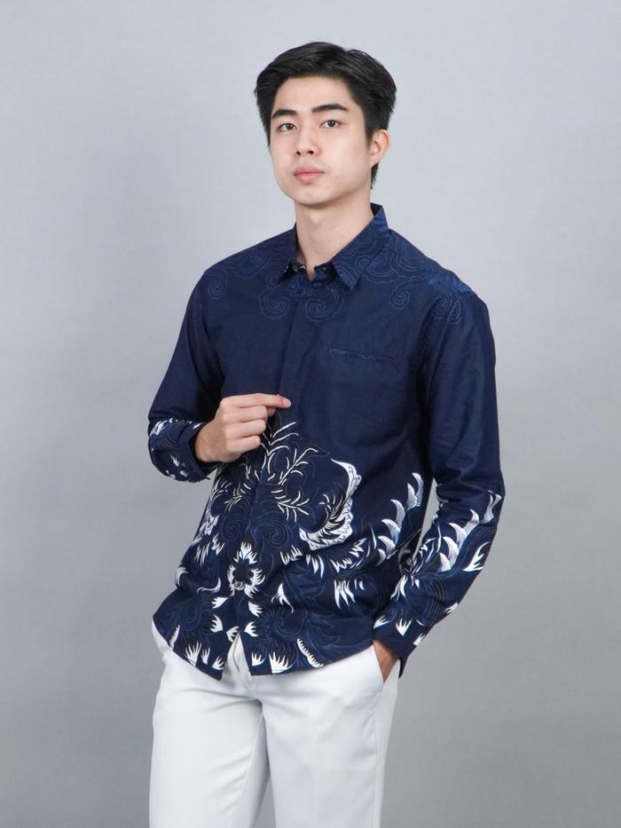 Swipe Up Kemeja Batik Pria Katun Slimfit Modern Lengan Panjang Motif Katsura Navy - Katsura Navy M