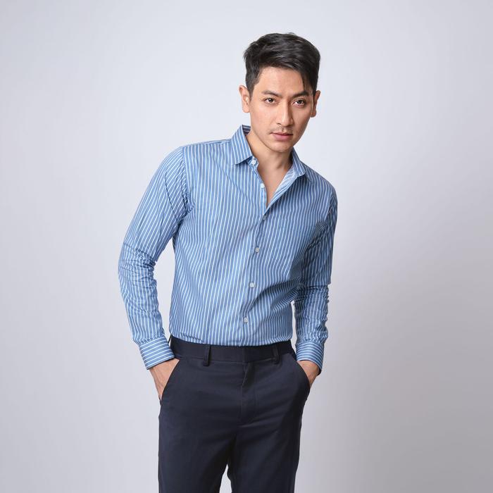 VENGOZ Kemeja Pria Slim Fit - Hugo Stripe Shirt Blue Sky LS - Blue Sky L