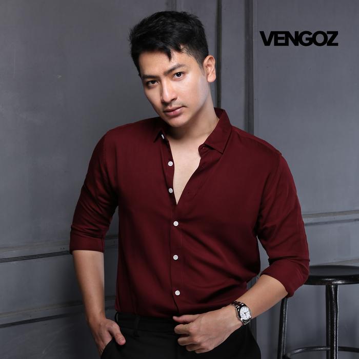 VENGOZ Kemeja Pria Slim Fit - Viscose Series Best Seller Nyaman Panjang - Solid Black M