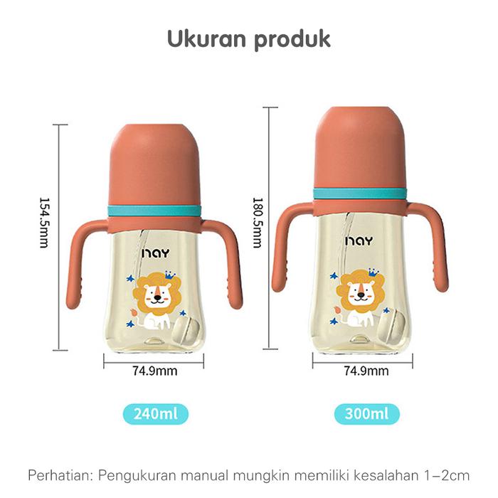 LAKOE Botol Susu Bayi Silikon Dot Bayi Handle Botol Feeding Bottle PP Wide Neck Botol Minum Sedotan Anak - Orange240ML