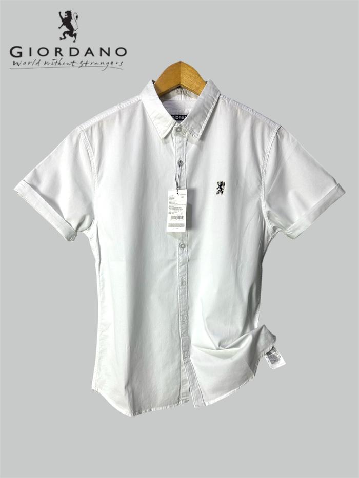 Kemeja Pria Giordano 3D Lengan Pendek Slimfit | Kemeja Polos Premium Giordano Distro Casual - Putih M