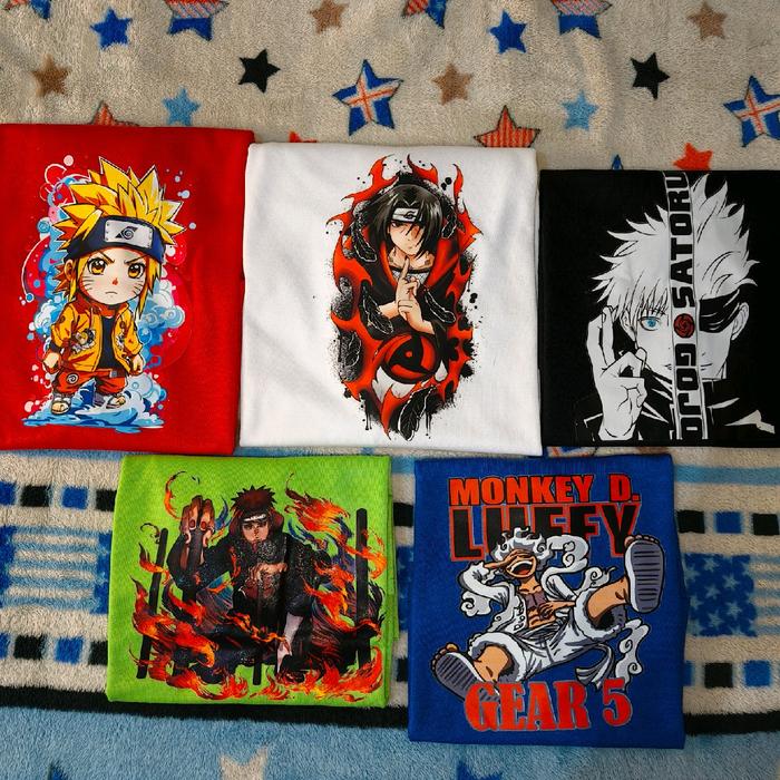 Paket 5pcs Kaos Anak Cowok Motif Campur ANIME(ITACHINARUTOGOJOPAINLUFFY) Fashion - CAMPUR WARNA S (1-2th)