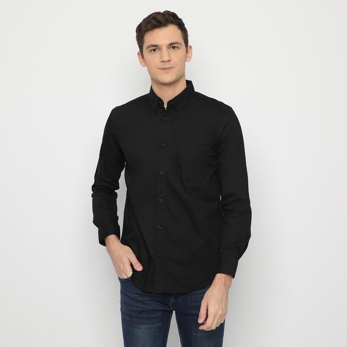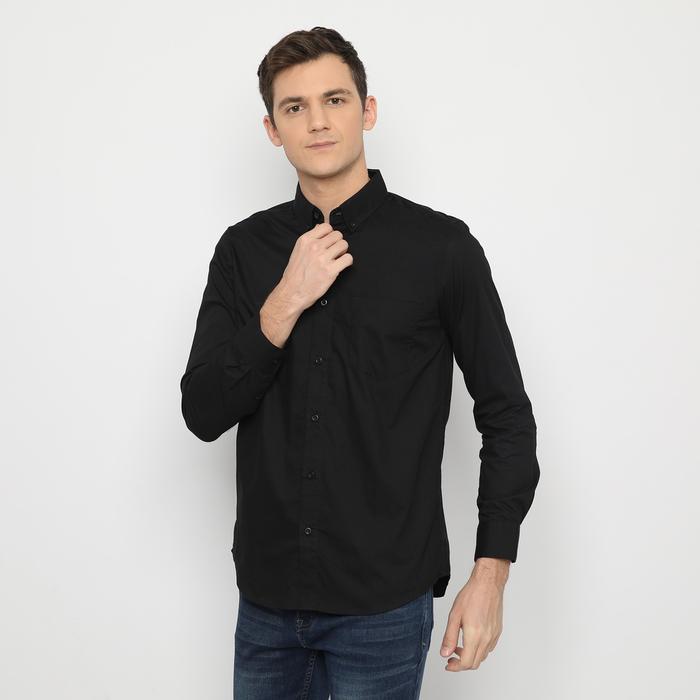 Platini Kemeja Basic Hitam Pria Lengan Panjang Katun Poplin 66302 - L