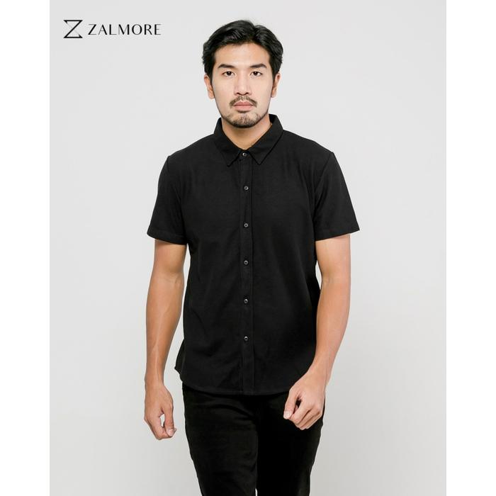 Zalmore Men Shirt Basic Premium LUMA Cotton - Kemeja Lengan Pendek Pria Lembut dan Adem - Black S